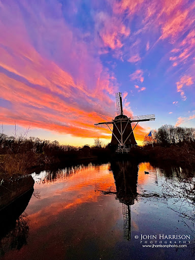 On my most recent visit, I was convinced the sunset would shy away, but to my astonishment, the sky transformed into a canvas of wild pinks and purples. The windmill, standing tall and proud, was perfectly silhouetted against this vibrant backdrop, with its reflection dancing gracefully on the water’s surface. It was a sight to behold, and one that I will cherish forever.