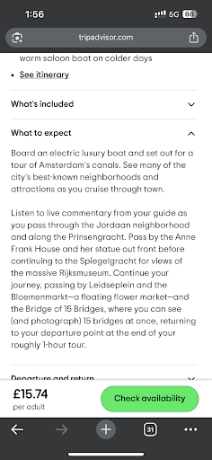 I booked the first canal tour of the day (at 10am) with Flagship Tours from Central Station because I had an afternoon flight from Schiphol. The night before the tour, they texted me that the boat had broken down and I could either do a 10am tour from the Anne Frank House (which was considerably further from my hotel) or a 10:30am tour from Central Station. It was a tight fit with my schedule, but I reluctantly chose the Anne Frank House. At the time of the tour, the boat and personnel were nowhere to be seen. Finally, a university-aged employee showed and informed my family and I that there was no 10am tour from the Anne Frank House, there was never a 10am tour, and she was sorry but all we could do was wait for 10:30am or ask for a refund at the nearby office. At the office, the employee processed our refund but was completely unsympathetic.