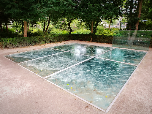 " It seemed as if it would be impossible to design a memorial for the site of the urn containing ashes of the victims murdered in Auschwitz concentration camp to be laid to rest in Dutch soil. How can you devise a form to mark a crime which you know in your heart will till be unforgiven when our planet ceases to exist two, or two thousand centuries from now? To attempt to find an image to reflect the ignominy and the suffering transcends the limits of your comprehension. When you look up at the sky it is impossible to imagine the same sun shining over that destruction as indifferently and peacefully as over a meadow filled with flowers. In a vision of justice the blue sky above you cracks apart as if the horrors that took place on earth below have desecrated eternity forever. That is what led me to place these broken mirrors on that small plot of ground above the urn. Here you will never again see the heavens reflected undesecrated. - Jan Wolkers - 1977 "