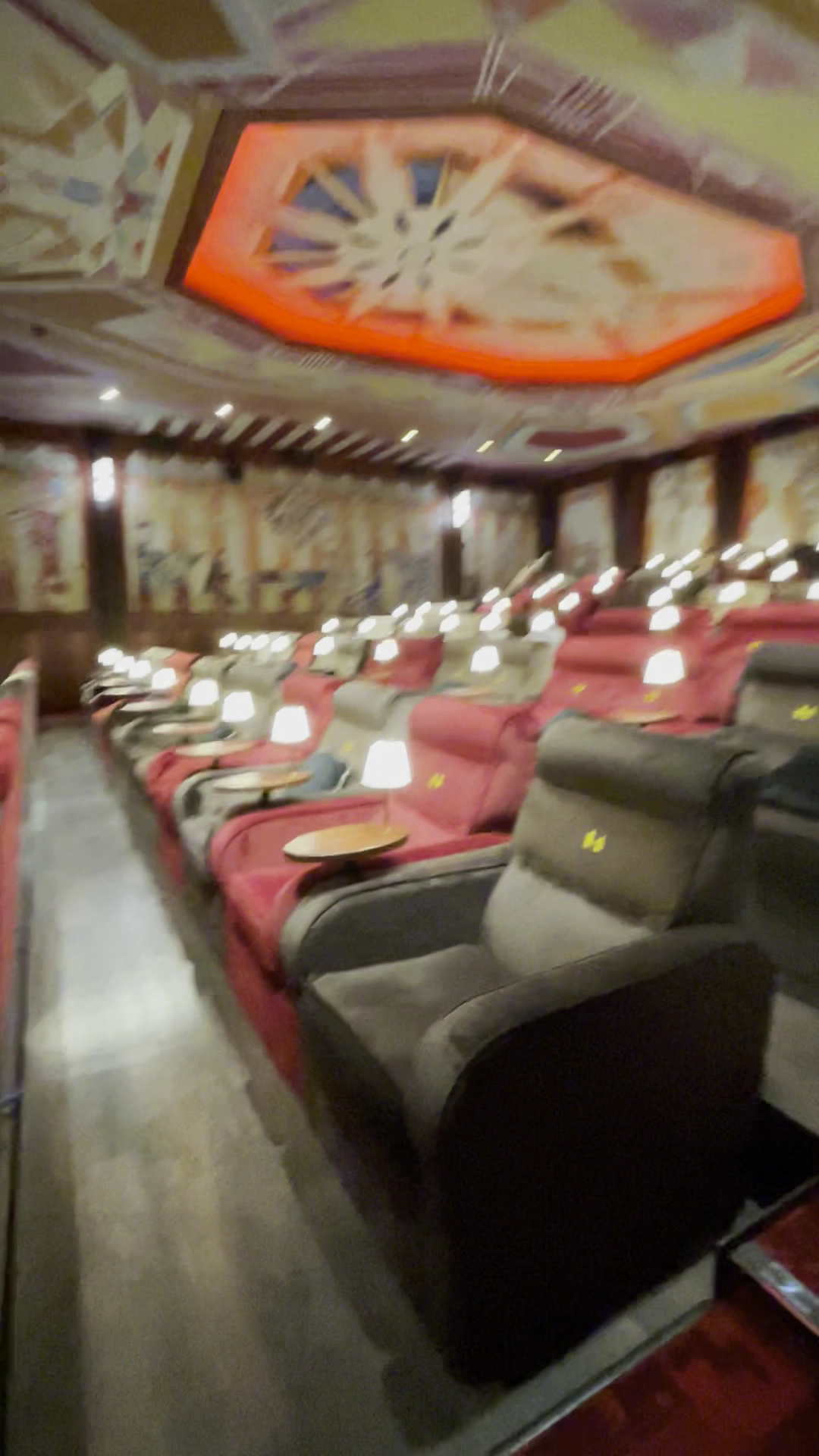 The main auditorium, known as the “Great Hall,” features an opulent dome ceiling and atmospheric lighting, creating a magical experience for moviegoers.