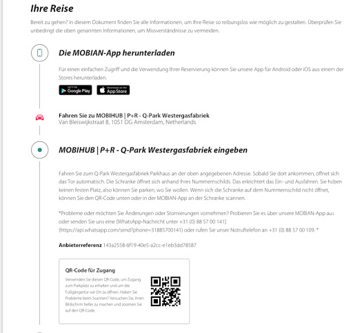 Read moreOp zich mooie parkeergarage, maar de IT-systemen werken niet. Op zondag via pc reservering met korting voor 7h voor maandag gemaakt, machtiging gegeven, werd meteen met mail bevestigt incl. factuur en QR-code. Parkeergeld werd ook onmiddellijk van de rekening afgeschreven. App gedownload, account met kenteken-nr aangemaakt en op mobiel parkeren ingesteld. Maandag ging de slagboom met nummerherkenning niet omhoog, ook de QR-code hielp niet, dus ticket getrokken. Na terugkomst kwam ik niet met de QR-code binnen, maar met het ticket, en ik moest voor de tweede keer betalen. Dinsdag was de klantenservice niet bereikbaar, na 10 minuten opgehangen. Dus dan maar liever met ticket verder en achteraf betalen of beter op straat parkeren. Stel de nummerherkenning werkt niet, als ik eruit wil, en voor een gesloten slagboom sta, en dan is ook niemand bereikbaar. Dit wil ik nooit meemaken! Ik heb er geen vertrouwen in dit systeem. En dan moet ik nu ook nog mijn dubbel betaald geld achterna lopen en een heel omslachtig restitutieformulier indienen, incl. twee betaalbewijzen (afschrift bankrekening en kwitantie ticketautomaat) uploaden; wat een rompslomp! Ik heb mijn account weer verwijdert en de app...