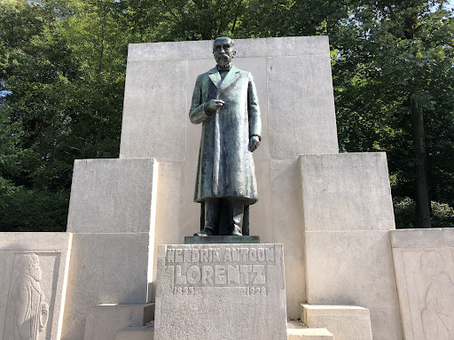 Hoe beoordeel je een monument als dit? Ik ben geen natuurkundige, maar aan de grootheid van dit monument kun je wel zien dat Lorentz een prominent geleerde geweest moet zijn! En dat Arnhem terecht trots is op deze hier geboren burger. De informatie bij het monument zegt genoeg over deze man en zijn werk! Nobelprijswinnaar in 1902. Nestor én vriend van Einstein, en wereldwijd gerespecteerd. Het monument uit 1931 is ook een kunstwerk met een voor die tijd kenmerkende klassieke stijl, gemaakt door L.O. Wenckebach, een zeer vooraanstaand kunstenaar, van wie talloze beeldhouwwerken in ons land te vinden zijn! Leuk is, dat de naam Lorenz, bij het zien van dit monument in Park Sonsbeek, bij mij associaties opriep met de lange ritten achter op de bromfiets van mijn vader naar opa en oma in Friesland, als we aan het einde van de Afsluitdijk de Lorentzsluizen voorbijkwamen! Pas op mijn 72e zie ik nu op Wikipedia dat hij vernoemd is in die sluizen bij Kornwerderzand (Friese kant) omdat (citaat) 'door zijn precisieberekeningen de aankomstplaats van de Afsluitdijk in Friesland bij Zurich in plaats van Piaam werd gelegd, om het stormgevaar te beperken'. Goed om...