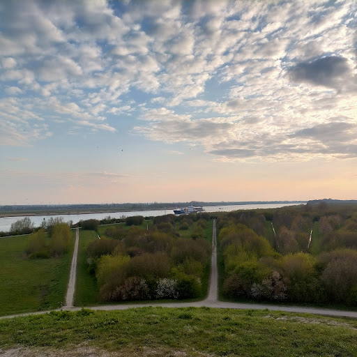 Amazing viewspot. A shame that the mirror at the top is in bad condition, but still looks amazing. The views are spectacular and there is an artistic bench to sit down and enjoy the peace at the place. You can watch the merchant ships cruising the Oude Maas, the Rotterdam’s skyscrapers in the distance and the surrounding park.