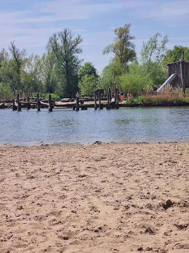 This is a sort of free entrance beach with some trees and lawned areas by a 'lake'. It has it's own free parking area, a Café and some facilities (WC, etc) as well as playground areas. Rather nice for children. The water is generally shallow but I have no idea where it comes from or how safe/clean it is (I chose not to swim). Most of the ground is fairly hard (not sand) but still OK to lay for a bit. In the summer months it can get extremely busy, noisy, and parking can run out. It also has an exercise circuit around the lake, or you can simply take...