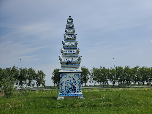 Largest tulip vase in the world at 12 metres tall. Hand painted in Delft. Design based on an actual tulip vase. Very close from TU Delft just a few mins bike ride. Now they just gotta find some giant tulips to decorate it!