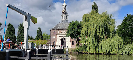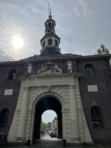 Eigenlijk is dit 1 van de mooiste poorten in Nederland die compleet en in zijn geheel bewaard is gebleven en zo rechtstreeks aan ons is overgedragen vanuit de Gouden Eeuw wat echt een klein wondertje is want in vrijwel geen enkele eeuw waren er zoveel oorlogen in Europa als toen. De Hollandse oorlog, de Tachtigjarige Oorlog, de Nederlands-Portugese oorlog, de 1e, de 2e en de 3e Engels-Nederlandse oorlog... En wanneer je dan bedenkt dat tegelijkertijd... de econonie bloeide als nooit tevoren. Het bewijst maar weer eens dat de algemene economische opvattingen maar een dun en smal ´handvat´ voor de realiteit zijn. De volgens onze bestuurders grootste crisis aller tijden, het ´Covid- Overgewicht´ complex, Queen Elisabeth had tenslotte als nota bene 95-jarige slechts milde koninklijke verschijnselen;), die allergrootste crisis ooit...had op enkele plaatsen huizenprijzen van een miljoen euro voor een rijtjeshuis tot gevolg. Wat een vreselijk naar bijverschijnsel was dat toch. Terug naar de poort; de is namelijk ´verknald´ eind jaren 90 van de vorige eeuw. Onroerend goed, oeroud of niet blijft voor de Hollander een stapel bakstenen die vooral in het publieke domein geld moet opleveren. Zo ook het cultureel erfgoed De Zijlpoort. Waar ooit de rederijkers als benauwd groepje bevoorrechtigden lekker veilig en ver weg van de arremoede hun rondeel verkondigden, arme kindertjes werden opgevangen of zelfs ook goederen werden opgeslagen verschenen twee modernistische en werkelijk draken van zijdegebouwen afgedekt met gras dat, oh wat een verrassing, niet wilde groeien op beton en in de lucht. In 1 zo´n zijtak drinken de Covid-dikkertjes die door het oog van de naald gingen de afgelopen twee jaar nu hun caffeïnevrije koffietjes. Hun elektrische fietsen, die natuurlijk eigenlijk ooit voor gehandicapten was bedoeld staan eigenwijs maar strak in het Hollandse gelid eenzaam buiten te wachten om hun eigenwijze berijder met de slome tred daarna weer veilig thuis te brengen. Alle huidige oorlogen zoals die in de Oekraïne ten spijt leeft de welstandige Hollander gewoon zijn gemakzuchtige leven ´uit´. De Zijlpoort zelf kijkt ernaar vanuit zijn klassieke postuur met een classisistische blik en mompelt binnensmonds ´dat er niets is veranderd´ en ´dat die 2 lelijke zijarmen hem een zorg zijn´. Het eigenlijke hoogtepunt van het jaar is trouwens de week voor Sinterklaas wanneer er een oeroude stoomboot afmeert tegenover de poort waardoor de oude glorie van de poort voor een paar dagen ook weer even op de omgeving reflecteert. Zie de foto! Oh ja, het zijn wel de enige échte zwartepieten die er huizen, u bent nu gewaarschuwd en daarom niet achteraf gaan...