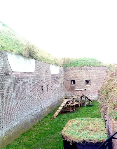 Recently we visited Fort Pannerden near Doornenburg. We live nearby and had cycled past it several times. From the parking lot it's a ten minute walk to the actual fortress, but visitors can also be brought and picked up by a golf cart. Our museum card was accepted at the ticket counter and we were issued a key badge and a map. There was also the opportunity to take an audio tour where you can wander around the Fort on your own. We decided to join one of the tours after an introductory film of about eight minutes, about the origins and purpose of the Fort over the years. After waiting for half an hour, while enjoying a nice beer and a portion of bitterballen from the restaurant, Wim, one of the enthusiastic volunteers of this museum, gave us our tour. The good man was a great storyteller and knew how to explain the history of the fortress, while regularly pointing out details that were necessary for the daily life of the soldiers, but that you as a visitor would not immediately notice. For example, there were alcoves where rainwater, which was purified by the earth layers above the fort, was collected. There were also alcoves that were specially intended as urinals and in the casemates, which are located on the outside of the building, there were special hatches to drain the gunpowder vapors. The tour culminated in a demonstration of a replica cannon, the original of which is in the National Military Museum in Soest. Finally, we visited the lookout point of the fort and ended the tour in the 'museum'...