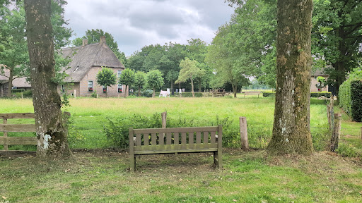 Het startpunt van mijn wandeling (Oer 't Veld, de rode paaltjes) was de Parkeerplaats bij 't Stokertje'. Vanaf het dorp loop je richting het het bos. Aan de bosrand zie je de Ijzertijdboerderij, een spieker en een leemkuil. De materialen die voor de bouw gebruikt zijn komen allemaal uit de omgeving. Alles is gebouwd op de manier waarop men dit vroeger vermoedelijk deed. Dit hebben ze gedaan aan de hand van een huisplattegrond uit de vroeg-Romeinse tijd. Verderop in het veld, achter de ijzertijdboerderij, werd op het moment van mijn bezoek een schaapskudde gehoed door een herder. Wat een mooi gezicht, een leuk begin van mijn wandeling.