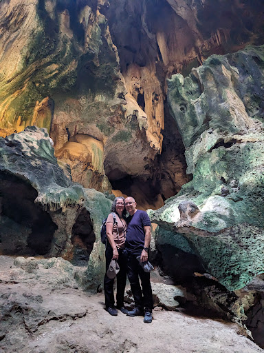 Read moreHato Caves was a great first stop on our vacation, since it's a unique spot near the airport. We weren't renting a car, so we decided to walk. Their website claimed it was a 12-minute walk, which wasn't the case from the main (west) entrance, but might have been if we'd taken the other (east) entrance instead. With only backpacks and a we-walk-everywhere attitude, we thought it was doable, but we wouldn't recommend it with rolling suitcases. Once we arrived, the staff at the caves were super nice. In addition to selling us tickets for the tour, they patiently answered our questions about their hours and let us leave our luggage behind the bar during our tour, and they didn't lock up and leave until we assured them that we had a driver coming to meet us. (The bar closes when the last tour leaves at 3pm, but the staff waits until 3:30 or 4pm to lock up, so people can enjoy the grounds after their 30-40 minute cave tour.). The caves themselves were smallish but pretty, though sadly photos were only allowed in one spot (the "window chamber", with natural light from a hole in the roof). In other rooms, we enjoyed seeing the cool limestone formations, algae-stained rocks, freshwater pools, and long-nose fruit bats. We had a great guide (Daisy), who pointed out all of those features and more - like soot-stained chambers showing that escaped slaves once hid there - in Spanish, English and Dutch. At one point, he turned off the lights so we could see how pitch-black most chambers are in their natural state. After the tour, we enjoyed birdwatching on their Indian Trail (though we were apparently too distracted to see any pre-colonial artifacts). At US$10pp, it felt like a good...