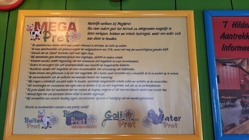 Megapret, nou de megapret vergaat je al bij de ingang! Overal dreigende bordjes en briefjes dat je absoluut geen eigen eten en drinken mee mag nemen, dat er streng wordt gehandhaafd, tassen worden gecontroleerd, er wordt zelfs gezegd dat je je tas terug moet brengen naar de auto! Dus ik als gepikeerd terug (want dit staat nergens duidelijk op de website en ik had die ochtend speciaal boterhammen gesmeerd en natuurlijk was lekkers ingepakt). Ik denk nou, flesje water moet wel kunnen toch? Weet terug naar binnen, hangt bij de kassa NOG een briefje, dat zelf een flesje water niet is toegestaan!! Sorry hoor, maar water is een eerste levensbehoefte! Gewoon ronduit asociaal en onbeschoft dat zelfs dit niet mag. Afijn, ik bestel bij de kassa de arrangementen (want voor een dagje uit wordt je hier door dit beleid toe verplicht!) en ik geef gewoon op normale en nette wijze aan dat ik het een asociaal beleid vind en zeer onvriendelijk naar gezinnen met een kleine beurs of kinderen die moeilijke eters zijn. Nou in no time staan er 3 medewerkers die zich er mee gaan bemoeien terwijl dit helemaal nergens voor nodig was! Ik bleef netjes, was niet boos, heb geen onaardige dingen gezegd en zelfs nog benadrukt dat het niet persoonlijk naar haar was, maar dat de feedback voor haar baas was bedoelt. Maar die extra medewerkers maakte er een hele nare sfeer van, waar mijn kind nog bij stond! Nou gewoon absurd! Wat een vijandige sfeer! Ze waren van mening dat het duidelijk op de website stond, nou ik heb de informatie nog steeds niet kunnen vinden! Zelfs niet op de pagina "eten en drinken" wordt er geen woord over gezegd! Dus ik voelde me behoorlijk belazerd omdat dit vooraf niet duidelijk was geweest. Nergens zijn zo streng op dit beleid. Hier is het verhongeren en uitdrogen of extra betalen als je hier een dagje uit wilt! Ik heb aangegeven dat een arrangement een keuze hoort te zijn, en dat zij het verplichten. Nou waren ze het ook niet mee eens. Deze mensen hebben een bord voor hun kop! Ga dan gewoon voor een all inclusive concept En communiceer dat duidelijk op je website, maar nu, maken ze er echt een asociale, zeer gast onvriendelijke bende van! De enige reden dat ik ben gebleven is omdat we met een groep waren en de rest al binnen was. Alleen was ik zeker ergens anders heen gegaan. Speeltuin was verder wel OK, maar niet bijzonder te noemen. En dan heb ik nog niet eens de belachelijk kleine porties eten benoemd! Zowel kinderen als volwassenen krijgen binnen het arrangement echt het kleinste bakje friet wat ik ooit heb gezien, en dan 2 mini snacks, ja MINI snacks... Daar kan je toch niet op leven?! Het moge duidelijk zijn dat ik dit asociale concept nooit meer sponsor met mijn bezoek. Kan genoeg andere leuke betaalbare opties verzinnen waar ik wel mijn eigen eten en drinken zonder gezeik en gedreigd mee mag nemen. Nee, geen goed woord voor over hoe ze hier je beroven van je eerste levensbehoefte en vervolgens overal extra voor laten betalen en je ook nog de zieligste porties ever krijgt. Geldklopperij vermomt in een zogenaamd goedkoop concept......
