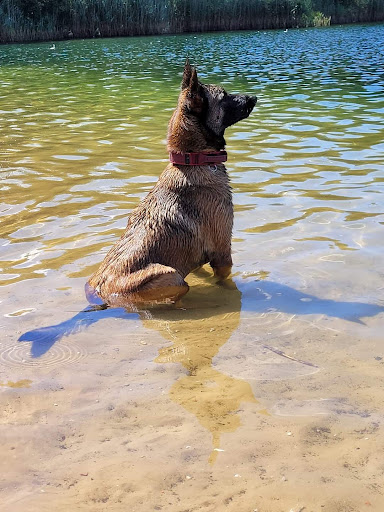 Om op het stuk te kunnen komen waar je wel met de hond mag komen is er een looppad door het bos heen die rond het hele meer ligt. Als je op de parking staat en naar het meer kijkt is links om het meer het makkelijkst en kortste om naar het wat groter open stuk te komen waar de foto is gemaakt. Video wilt hij niet uploaden Maar is het zeker waard om eens een kijkje te nemen. Water was kraak helder zowel de kids als de hond hebben zich...