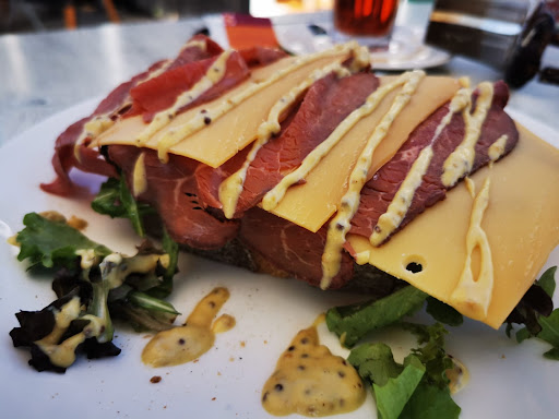 Wij aten de meest zalige open brie tosti ever. (Doe me er nog maar één, ja✌🏼 feitelijk waren het twee open boterhamtosti's ) Een broodje vitello tonato en het hummus broodje van pompoen met geroosterde groenten. Knappe broodjes komen continu uit de halfopen keuken waarbij mij vooral de variatie aan structuur verraste. Gezond (weinig zoutgebruik), vers en lekker.
