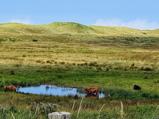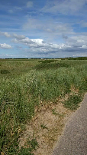 Wir sind mit dem Fahrrad entlang gefahren. Man kann hier, zwischen den beiden Wällen der Dünen aber wohl auch durch die...