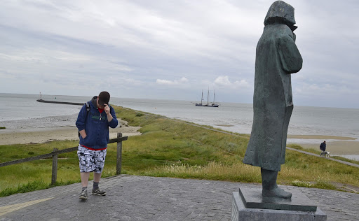Read moreEin schönes Denkmal für die nicht Heimgekerten Seemänner. In der Saison ist das ein belebter Ort mit schöner Aussicht über Sandbänke in Richtung Westen, am Horizont kann man die Insel Vlieland sehen. Aber bei Sturm wie zum Beispiel am 31.Oktober 2013 bekommt man eine Vorstellung davon welchen Gefahren die Seeleute ausgesetzt sein können. Treibgut wurde von Windböhen erfaßt und wie Geschosse durch die Luft gewirbelt. Ich habe mich hinter der Figur versteckt und konnte sehen wie Dachpfannen von den Häusern gerissen wurden. Der Fährbetrieb wurde eingestellt und ICH hätte um nichts in der Welt mit den Jungens auf See...