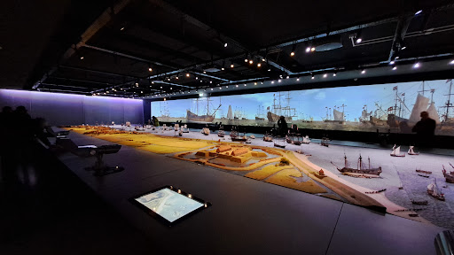 A large, interactive scale model recreates the Texel Roads, showing how ships anchored off the coast during the Golden Age.