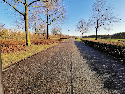 Nice green and quiet place to chill out. This is a nice choice when comes to walking with Your Kids, many people come here to walk animals, there is special fenced area when they can run loose. Place is fairly big, available mostly for strollers since it is guarded by rails shaped into narrow walking passage, it is still possible to walk with the bike though. There is a small skate area. The park is off limits in night...