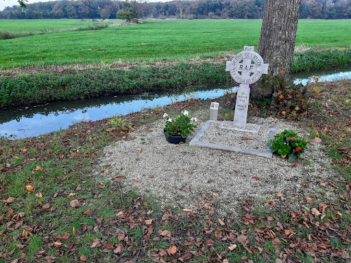 In de eindeloos lijkende lange Laan vanaf kasteel Beverweerd richting de Langbroekerwetering dit bescheiden maar eervolle herdenkingskruis ter nagedachtenis aan de Franse RAF-vlieger die eind februari 1945 daar neerstortte. Hij kwam terug van een bombardementsvlucht in Duitsland en werd hier neergehaald. Een actieve stichting houdt op 4 mei hier...