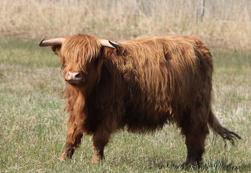 Highland cows and horses roam the site.