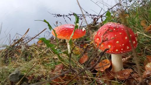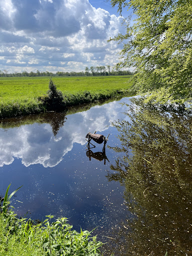 Heerlijk landgoed met veel afwisseling...landerijen maar vooral veel bos met sloten en een prachtig bosmeer waar de karper zichtbaar rond zwommen en diversen IJsvogels hun fel blauwe veren lieten glimmen. De vele auto's op de parkeerplaats deed vermoeden dat het druk kon zijn maar dat gevoel was zo weg aangezien het landgoed groot genoeg is om iedereen de ruimte te geven....diverse kleuren vertegenwoordigen een wandelroute. Jammer was dat de rode route van 7.5km niet langs het theehuis kwam en we ook geen bordje hebben ontdekt die ons daar heen kon...