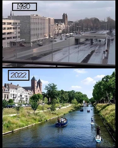 بعد أكثر من 40 عامًا من صب الخرسانة على أجزاء من القناة التي كانت تحيط بالبلدة القديمة في أوتريخت لاستيعاب طريق سريع مكون من 12 حارة، احتفلت المدينة الهولندية بترميم واستعادة قناتها والتي هي خندق عمره 900 عام. ويُنظر إلى هذه الخطوة على أنها "تصحيح لخطأ تاريخي"، وتحول من مخطط مدينة معدة للسيارات إلى مدينة معدة للبشر.
