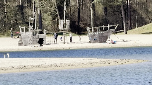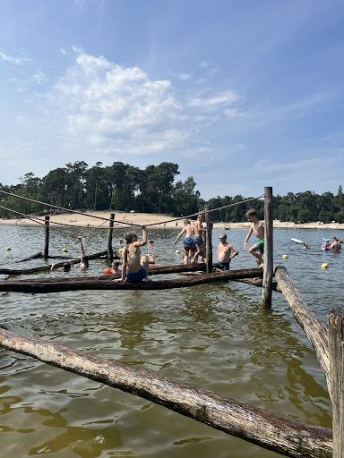 We spent the whole day at this place, and we absolutely loved it! We had a fairly long walk to the lake after taking the train, but the walk was wonderful. The lake is surrounded by a beautiful pine forest, and the scent of the sun-warmed trees creates an atmosphere of true relaxation in nature. The water in the lake warms up nicely, so children can swim comfortably. We felt like we were at a resort—it was so cozy and relaxing. There are also fun activities, such as a water pump installation where water flows through channels, which kids really enjoy playing with. Another fun activity is walking on logs over the water, which adds a bit of excitement. There are plenty of toilets available on-site, which is very convenient. Entrance is paid and costs 3.50, and tickets can be purchased on the website in advance or on the same day. We bought our tickets the same day by going to the website right at the entrance. It was very peaceful and beautiful here, and we will definitely come back again. We went as a family: my wife, our 10-year-old child, and I. We all really...