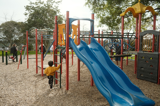 Read moreNice little playground kids can enjoy. Playground got with a double blue slide, climbing equipment, tunnel, ramps, monkey bars, and more. It has a big park kids can run around. Got a flying fox....