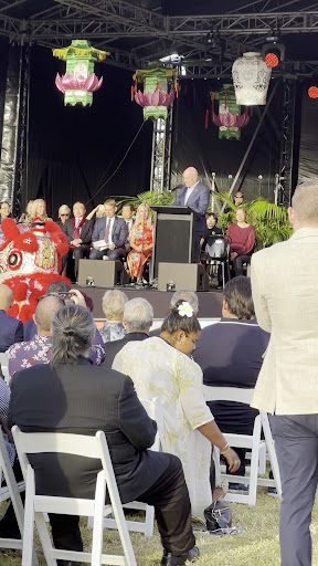 Apparently, the sit down audience were only invited persons such as BNZ sponsors and other organisations and the public were shunned. There was a grand stand for the public but that was too far away from the stage; therefore, it’s difficult to see the presentation.