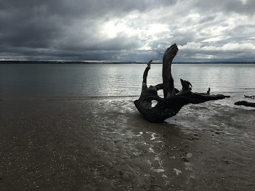 Very busy playground. This park is probably best known for its playground but there’s also beach access and a huge area of grass suitable for picnics, running around and ball games. The playground is wheelchair accessible and it also has a special area for preschoolers with a low level platform for kids to walk around and interactive boards at various points e.g. a music board. There’s a spiders’ web (spacenet) for climbing, a flying fox and train. The latter is people powered and requires kids or willing adults to push it along the track. Parents will need to pay attention especially with preschoolers as the train gathers quite a lot of speed! There are toilets within the park. Cafes are plentiful along Point Chevallier Road (including some that sell...