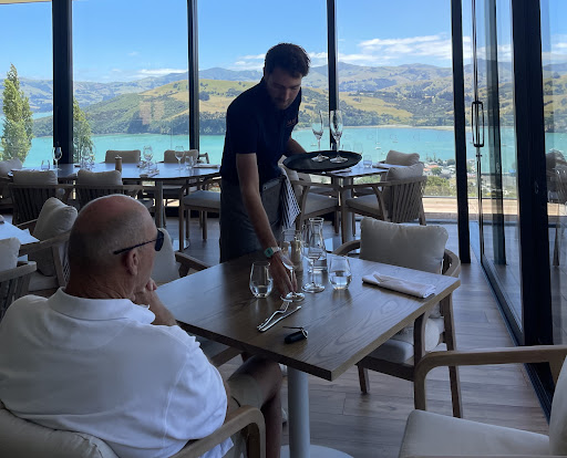 Read moreThe view is spectacular, high on the hillside overlooking Akaroa harbour. The interior decor is chic, modern, classic with a subtle French influence. The food is outstanding, flavours are subtle when they need to be and bold when they need to be. We had the slow cooked lamb shoulder sharing platter - pull off the bone lamb, lots of vegetables and the gravy/jus deep umami flavours. The wine list is impressive with French and Reserve selections. The pick-up and drop-off within the village is a wonderful service. What carries this amazing food experience is the staff - attentive, friendly and eager to make your time with them memorable. We loo forward to returning to explore more...