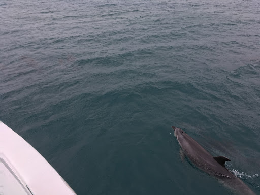 His knowledge about each island and the ancient maritime laws, local myths and legends about the Maori people was fascinating. Of course the weather made it impossible to make it out to the whole in the rock, but we did find the pod of dolphins in a rough and stormy patch. Just as we drifted into the area where we could watch the dolphins the weather cleared and we were able to take some photos and then...