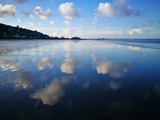 It's at the far Eastern end of Sumner beach tucked under the lee of the cliffs. So is sheltered from prevailing easterlies, but still quite sunny. Plenty of new play ground equipment here that is suitable for most ages. And the water play area is off to the side near the toilets - provides an area for the kids to go splashing around during hot days. So you don't need to go into the sea for them to cool off.