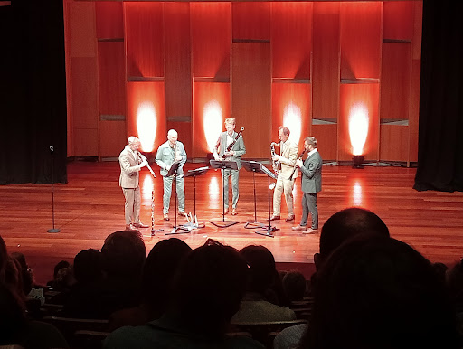 An objectively terrible photo of a truly impressive chamber concert. Calefax is a Dutch reed quintet which not only pioneered the form but have popularized it, sparking other reed ensembles in the 35 years they've been playing. The predominantly baroque instruments lend themselves extraordinarily well to arrangements of organ music, and one cannot go past Bach's canon. Their other arrangements are full of musicality and surprises. In Gershwin's An American in Paris you would think the clarinet and the saxophone would get all the glory, but Calefax surprises and entrances by giving melody lines to the oboe, bassoon, and contrabass clarinet as well. I was thoroughly entertained by such superb...