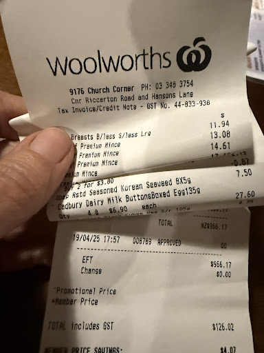 Read moreHonestly I was always very skeptical about click to collect until some circumstances made me do it for the first time. Then I did it again at the different store - Moorhouse Ave Woolies not only Church Corner one, same amazing experience. Actually Woolies personal shoppers did the shopping better than I would and I am a picky and sassy shopper, I don't even trust my family to do the shopping for me! I was utterly impressed. Best items ever picked and I was shopping across the range of fresh and tricky produce, breads, bulk items. Once I wanted only ONE chunky carrot and got the exact thing, perfect one! And another super important thing taken from this experience - it saves me not only heaps of time to click&collect, it helps me budget. It is free over certain $$ (which we spent @ supermarkets anyway) and I get exactly what I want and I never go overboard by adding an item here and item there so I actually end up spending less then intended and feel great about it.Finally,$1.50 paid for paper bags per round of click to collect is also $ spent well. These are perfect for weekly recucable items which can be placed directly into the yellow bin. So ++++ only and great thank you for being my smart shoppers. Life and budget savers indeed! Will keep doing it big time. Also this very store @ Church Corner once helped in amazing way when I had a problem with dairy product. Replaced and refunded in the best possible customer service manner So, although out of the way big time this remains one of my fav...