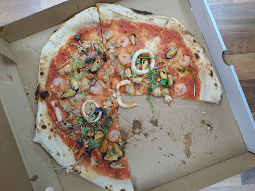 Nice new Italian style pizzeria in Milford. Home made dough and sauce. Very good flavour and multiple vegetarian options. We had take away and we're happily surprised when we open the box as the pizzas are big, and well garnished. We had the picante and the seafood, and they were both a hit! And the tiramisu is to die for! Will definitely dine in next time, cause the place is nice and has a good vibe! And I want to play on the free arcade...