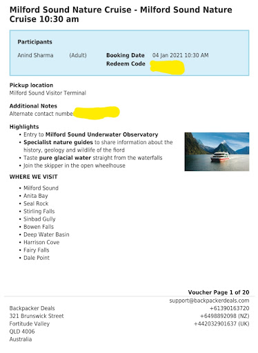 The ticket clearly mentions Nature Cruise & Entry to Milford Sound Underwater Observatory and total tour time is 3 Hours.