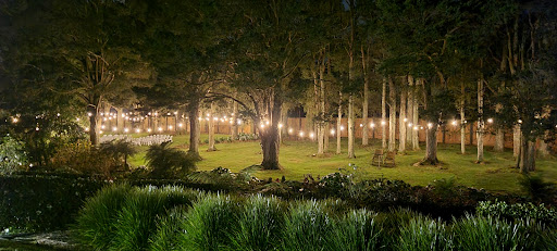 The location is breathtaking , with multiple options for marquee and ceremony locations. At night Peter discreetly turns on the festoon lighting wrapped around big trees down by the pond, and a large open fire pit for guests to enjoy.