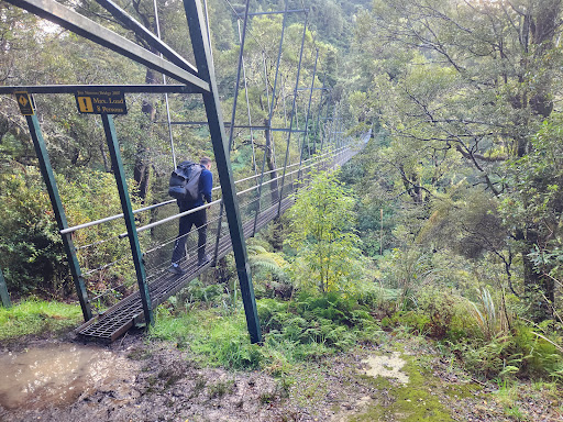 The walk to the hut from Waohine Car Park was extremely difficult with numerous obstacles, tree roots, deep mud, slippery clay surfaces. Suspension bridges were very fun and bouncy.