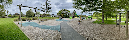 A peaceful park surrounded by trees, houses and retirement homes. There are 4 swings in total, a Seesaw, large slide, smaller slides and a horizontal ladder for the kids to climb. It also has two pull up bars for exercising. There is large space on the grass to have a picnic, with big trees, bird life all around you. It's a 2 minute walk to the estuary walkway, next to Orewa College and also very close to...