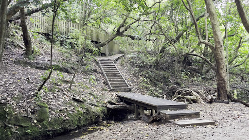 Good carpark with ample space before the entry onto the track. If you need a break from the sun, Waterfall Gully offers some shade and respite. There you will find a nice path that winds through with boardwalks and a few steps. Keep an eye on an eel that likes to appear in the stream and can be sited from the little bridge. It’s an easy walk, with footwear cleaning stations and predator gates to enter the bush. You can continue up to the viewing platform, for probably another 5 minutes. On the way to the carpark, there is also a beach with...