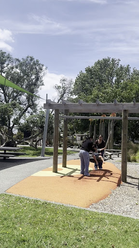 Disappointing. No monkey bars or flying fox - these are the must-haves of any playground, at least one of the two. Also, it's a lovely new big green space with trees, flowers, a BBQ, picnic benches, shade etc. ........ BUT no public bathroom! ........ A BBQ under shade and picnic benches would suggest the space to be utilized for picnics etc. BUT without a toilet to access? ........ Another good thing is it's right next to the bus stop and they have a community...