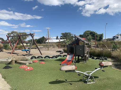 Added notes: If you are looking for a quieter playground then we recommend this as a great option. Surfaces range from artificial turf, wood chip, safety matting and concrete paths. The playground is unfenced. Natural planting provides a pretty environment however there is no artificial shade sails and limited natural shade