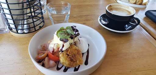 WOW, WOW, WOW! What a find this place is.😃 Beautifully laid out interior with big clean, tall windows allowing the space to fill with light and sun.Soft and dreamy music...a very unique and clever choice. Friendly staff with happy welcoming smiles! We ordered the eggs Benedict..the best I have had in a long, long time.A great deal of effort in regard to a beautiful presentation ..thank you Chef...eggs were perfect, bacon tasty and not overcooked and the rosti was browned to a magic crispy finish. Five Stars! We also had the orange and date scone but it was very dry.Small Flat white double shot coffees were served but, as in most other cafes with too much milk..they are not meant to be lattes, but they were hot.The eggs seemed to take a long time to arrive even though the cafe was not busy (as I said earlier...the Chef is a perfectionist 🙂). Today I'm going to leave just 4 stars but I can't wait to visit these folks again and I'm certain that my rating will be 5 stars. Thanks for having us at your place today and making us...