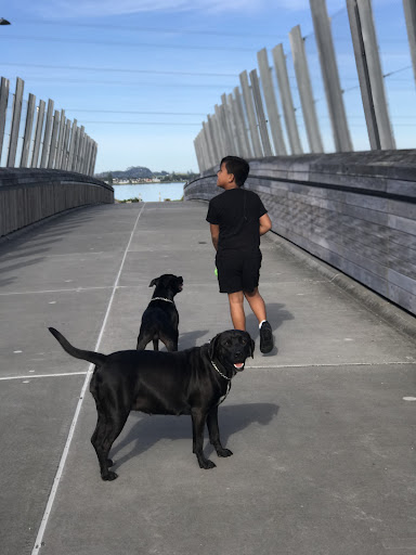 This is probably the best dog park in Tamaki Makaurau. There is a big carpark, off the road, next to the park. There is water for dogs to swim. There is a dog friendly drinking fountain. There are fields. There is a kid's playground. There are dog-poo bins throughout, but unfortunately no poo bags at the park. There is a public bathroom which is disability friendly. There is also a wheelchair friendly path around most of the lagoon. It would be better if it was entirely around, but the last part of the path, joins outside the fence with the footpath on the road, and it has stairs and a gate. However, a wheelchair user could turn around, and go back the way they came, without having to have their dog on leash. Whilst this isn't adequate, it is probably the best off leash dog walking option for wheelchair users in Tamaki Makaurau...