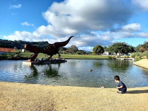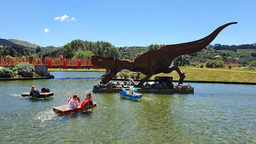 An awesome children playground which is split into different areas, some more suited to younger or older kids. There's also an epic flying fox where bigger kids have fun flying along, bringing the rope back to waiting kids to cheer them on too. Tunnels and walls to climb and explore. A bridge to cross. A roar-some t-rex statue and a lot of things that kids will find as they explore the space. It's outside and has some shade but sun protection is always a good idea! Seats and benches around for a snack break, drink area. There are some drinking fountains too. Friends have young kids aged from toddlers right up to 9 year olds and they all love coming here to play, explore and learn. Also a good walking space and it's easy to while away the hours here. Parking is free in a parking lot off the road as well as free on street parking. The main road nearby is quite busy as it links through to Kennedy Good Bridge and the State Highway...