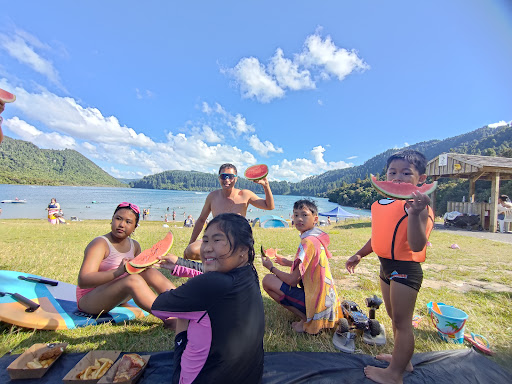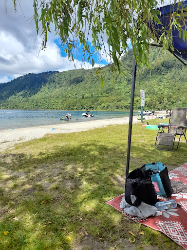 Definitely a must for whanau day out. As you drive in, on the right there is plenty parking and leveled areas like an arena looking onto the lake. BBQ available in this area and toilet facilities.. Just pitch up your gazebo on whatever level u want. If you go past that right turn, head towards the boat ramp, on your left u come into the area thats lined with shaded trees and closest to the lake that's where we were. Beautiful. Safest place I've been to for the toddlers 4yrs and down. Mi son in law had his boat and kayak so the older ones including adults were enjoying the lake on the bisket thingy and kayaking. There are toilet facilities n BBQ in this area too. There are designated areas for swimming, kayaking and of course boating. We travelled from Mt Maunganui to The Blue Lake didnt take us long to get there we left early and left late. Forgot, the lake is not sandy. So if your not use to walking on pebbles advise to get those beach scuff,boots like diving shoes. It didn't deter some of mi mokopuna...