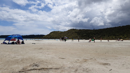 Beautiful lake with white sand and crystal clear water. Loads of people enjoying sun and water activities. Lots of boats and...