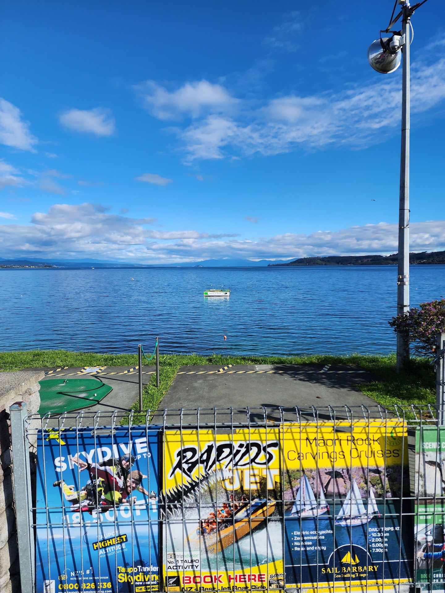 A bit of a different fun activity for those visiting Taupo. Found near the entrance to Taupo, the target green floats on a pontoon in the magnificent Lake Taupo, with vìews of Mt Ruapehu in the background. While the chances of hitting the green are reasonably high for any golfer (it's fun to compete with your mates to see who can achieve this the most often), a hole in one is nearly impossible. There are, however, prizes if you do manage it. It is quite expensive, you don't get many attempts unless you are prepared to pay for it. But overall the prices are fairly typical of any tourist activity in Taupo. Worth a go at least one time when you...