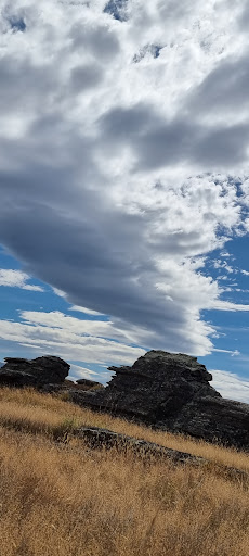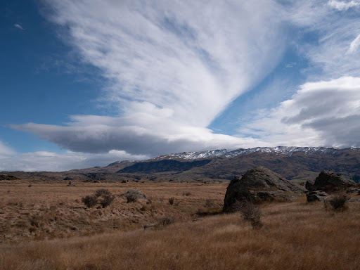 A beautiful loop walk around Sutton Salt Lake, 3.5 km on the flat, takes about an hour. stunning landscape of distinctive schist tors and rock pillars. Sutton Salt Lake is New Zealand’s only inland salt lake. It has no outlet, so the lake has concentrated the salts from surrounding soils. Formed over the last 3 million years, the ‘Rock and Pillars’ are a series of folds (steep ranges rolling onwards like an ocean swell), the result of deep local faulting. Some blocks of schist rock remain long after the surrounding rock has eroded away. These ‘tors’ are a feature of the bleak and windswept ridges. Freeze and thaw cycles make it difficult for plants to grow and have left wave-like ridge patterns in the soil. A lens-shaped cloud formation, known locally as the ‘Taieri Pet’, is seen regularly during north-west winds. A highly unusual cloud formation that is found in very few places around the world. The Rock and Pillars have a very flat top with steep slopes on either side, and they lie perpendicular to the prevailing westerly winds. When these “fohn” winds are forced up and over the range it can create a dramatic cloud formation that the locals call “The Taieri Pet.” Meteorologists call it a “lenticular billow cloud.” It can be a single lens-shaped cloud or it can be shaped like a huge stack of pancakes with clear air between the cloud layers. It may seem stationary, but the wind is circulating rapidly...