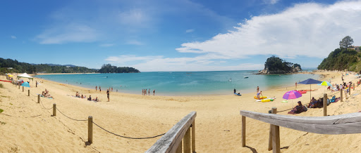Views of Tasman Bay and main Kaiteriteri to look out on. More car parks in shade than the main beach. Less boats and more trees. You turn off to the signposted road just before large Kaiteriteri on the right hand side. Same all tide swimming. No shops so bring your picnic. Short walk over to Stephen's bay. An eagle ray was in the water when we went. Lots of things to look at. Sand castle building recommended with local shells for ornamental and...