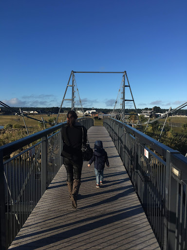 This is a lovely spot to visit with the kids/ grandkids. Great activities for them to do and share, everything from solving maze puzzles, to making music, swinging sliding through a big pipe slide , to climbing wall, spinners, siderweb frame, balance activitied, lesser slides, basket swing, toddler swing, and a few more challenging activities... and... there's coffe e and food close by! The playground is well maintained, with softfall ground cover underneath , seating for adultson benches or on the artificial grass of the hill. If you get bored with playing you can take the kids down to the little beach for a play on the sand. ( But stay out of the water, because there are signs saying they are having trouble with toxic algae bloom at present. You can walkaround the artificial lake and take the family dog if you want. We chose to cross one bridge, turn left ans walk to the next bridge, cross to the island with its waterfall, picnic spots, and even a public barbeque. Plenty of seating. Bring the sausages, steak and salads! Then we walked on over Bob's Bridge back to the car park, by the cafe. There zre public toilets there, that have good washing up facilities as well...even soap! Ver attractive views of the lake and wildlife, mostly aquatic birds. Well worth a visit. There is even an icecream shop as you come back from the island. Just off Main Road north. Turn in at the roundabout, and head for the lakeshore. You won't be...